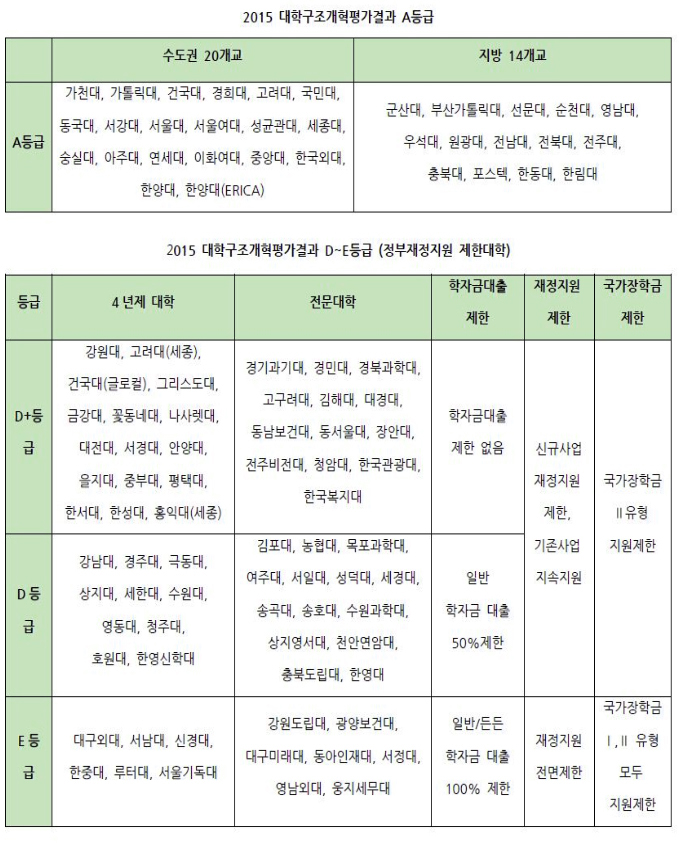 2015 대학구조개혁 평가결과