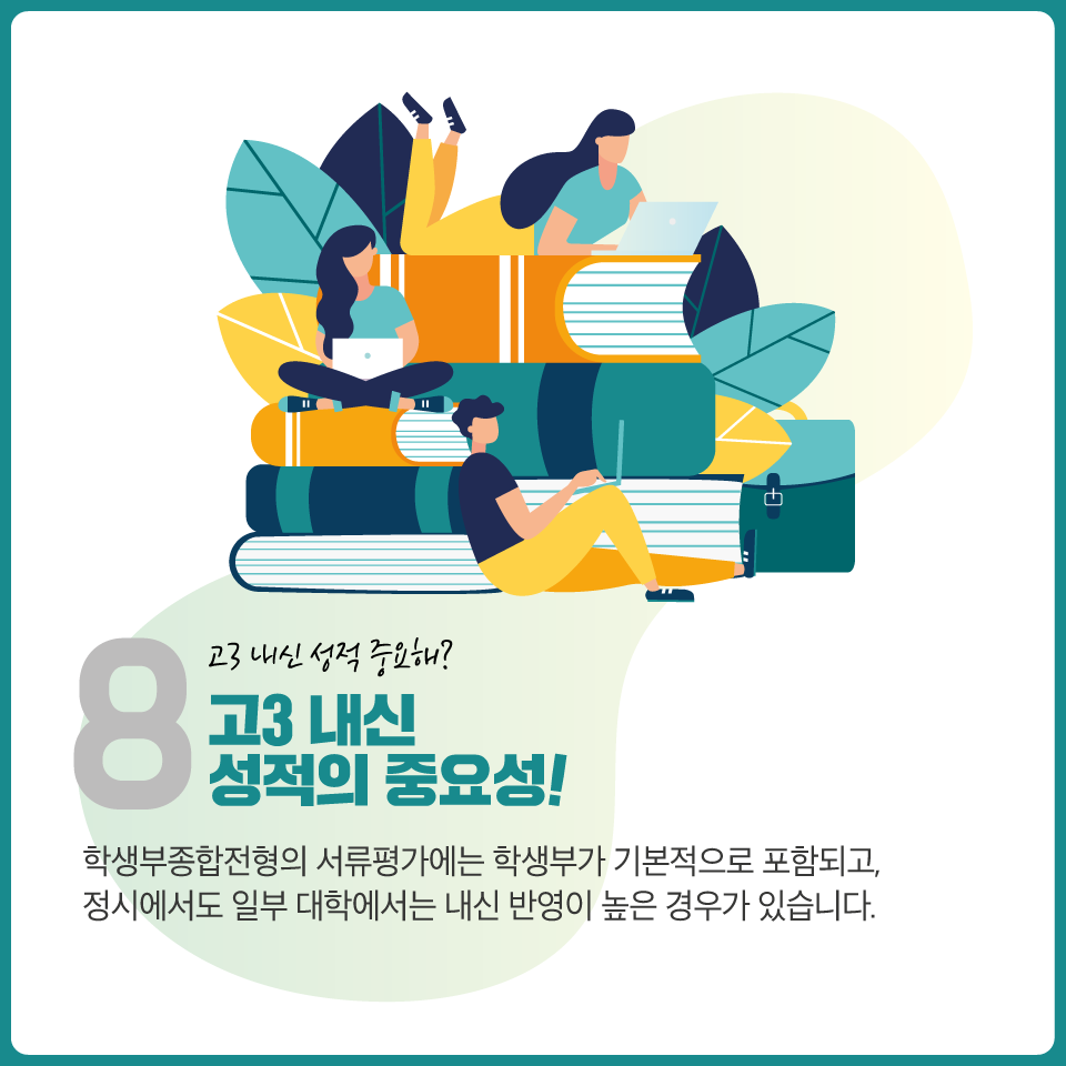 학생부종합전형의 서류평가에도 학생부가 포함되어 있고, 정시전형에서도 일부 대학은 내신 성적의 비중을