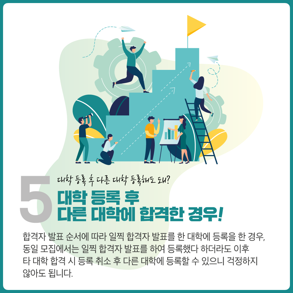 경우가 있을 수도 있겠죠? 그때는 먼저 발표한 대학교에 등록을 취소하고 나중에 발표한 대학에 다시 등록해도 무방합니다.