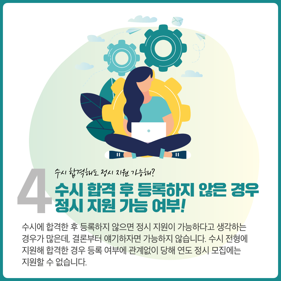 수시전형에 합격을 하고난 후, 등록하지 않으면 정시에 지원할 수 있다고 생각하는 분들이 많은데요.