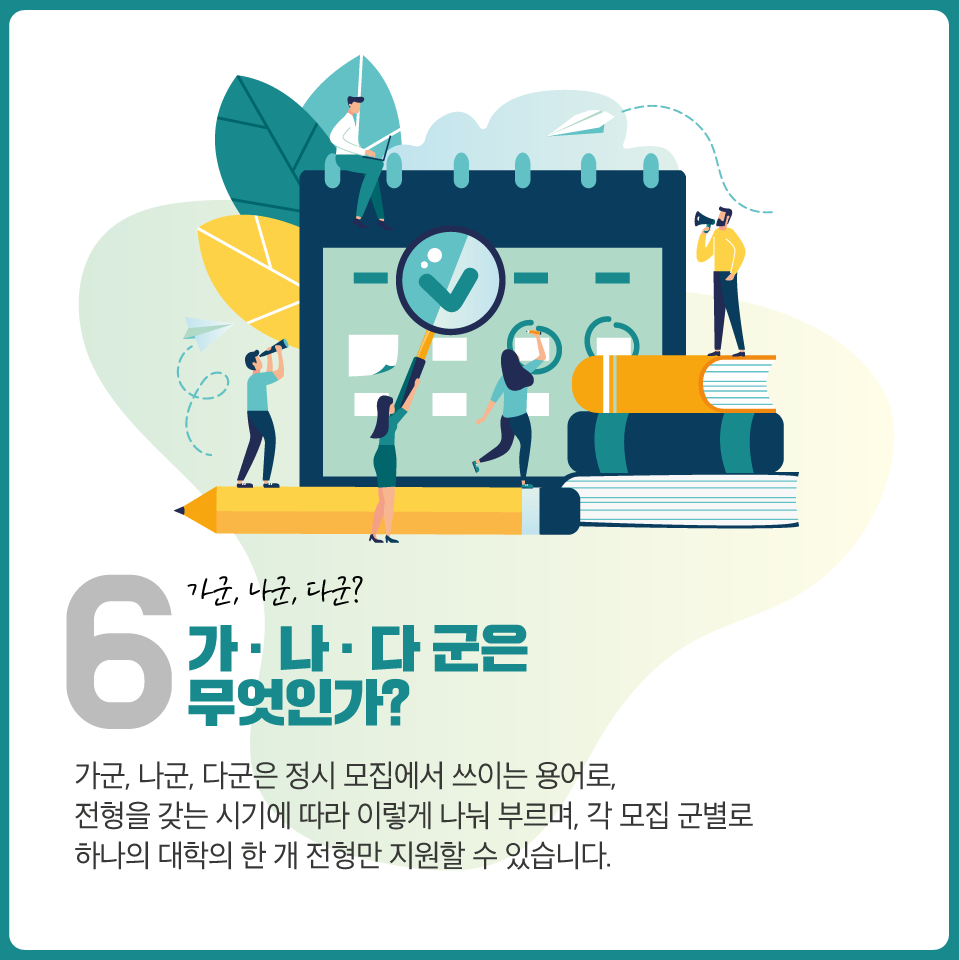 가, 나, 다군이라는 말은 정시모집에서만 사용하는 용어로 전형을 갖는 시기에 따라 구분해서 사용합니다.