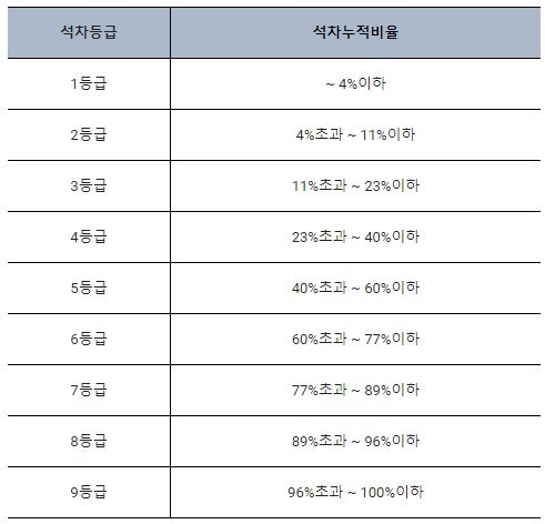 [표] 고등학교 석차등급
